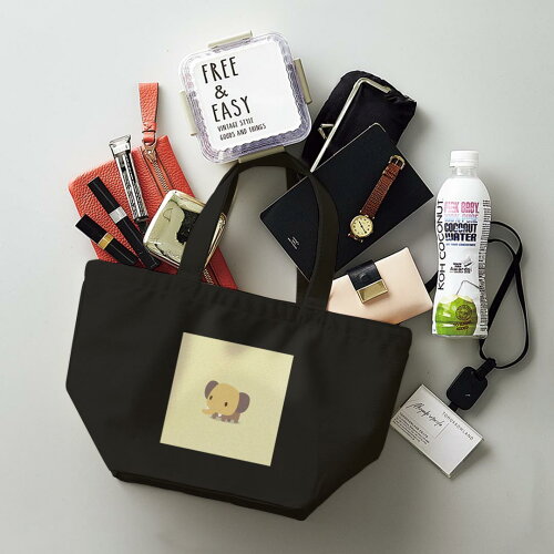 デザインランチバッグ キャンバス デイパック バッグ レディースバッグ トートバッグ ナチュラル 黒 black 007848 象 ぞう イラスト キャラクター