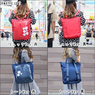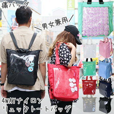 4WAYナイロンリュックトートバッグ 男女兼用 ユニセックス リュック デイパック トート 缶バッジ キーホルダー カスタム 自作 アレンジ ビニール 2WAY 3WAY 痛バッグ 痛バック ビニールバッグ 痛バ